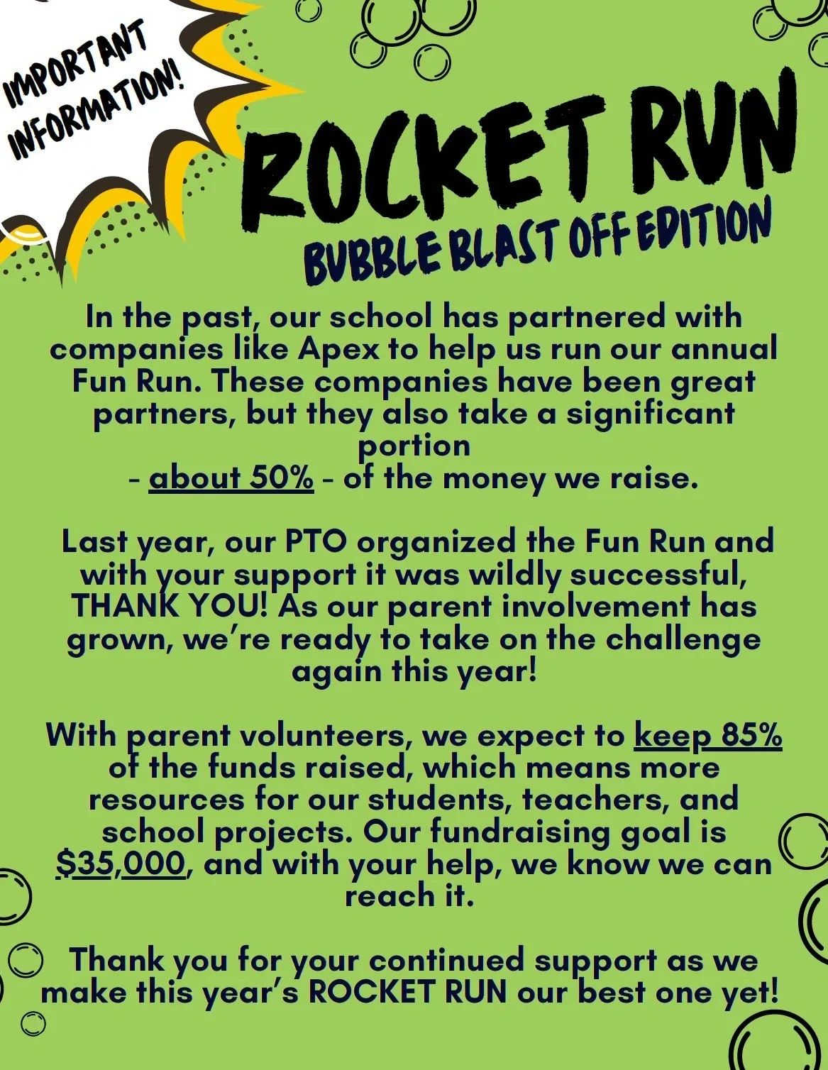 Your involvement will help ensure that our Rocket Run is a smooth, enjoyable experience for everyone. Plus, it’s a fantastic way to show your child how much you care about their school community!